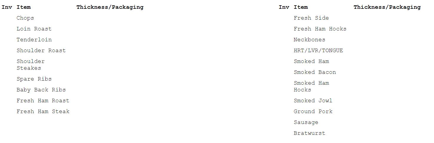 Standard Pork Cutting InstructionsStandard Beef Cutting Instructions